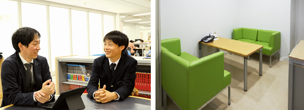 6床のベッド、多目的トイレやシャワーブースを完備。生徒の体調管理に努めます。